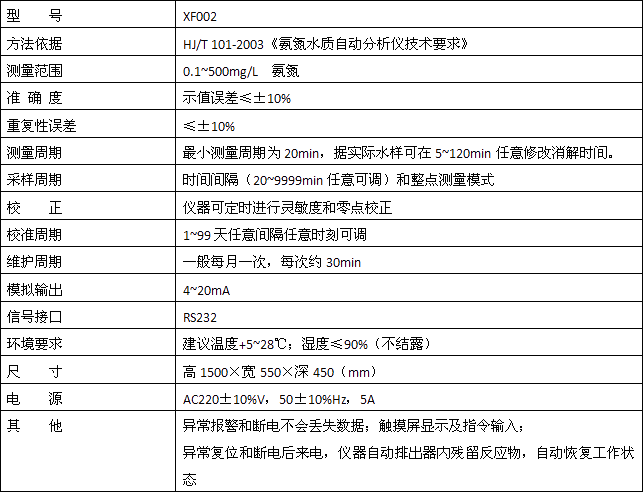 水樣和掩蔽劑混合后,以游離態(tài)的氨或銨離子等形成存在的氨氮,在堿性環(huán)境和增敏劑存在的情況下,與水楊酸顯色試劑反應(yīng)生成一種帶色絡(luò)合物,分析儀檢測(cè)此顏色的變化,并把這種變化換算成氨氮值輸出,生成的帶色絡(luò)合物量相當(dāng)于氨含量。